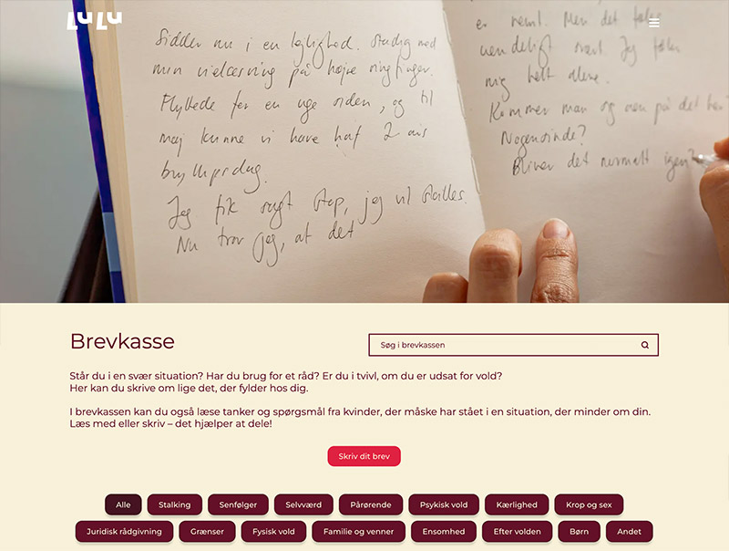 Jeg har designet en komplet ny hjemmeside hvor det er kvinden der har været i voldsforhold der er i fokus.