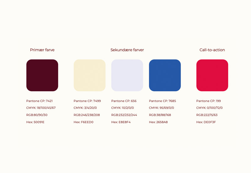 For at holde et professionel og ensartet udtryk har jeg udviklet en samlet grafisk identitet. Identiteten er samlet i en design guide og indeholder logo, farver, skrifttyper, ikoner, eksempler og skabeloner.