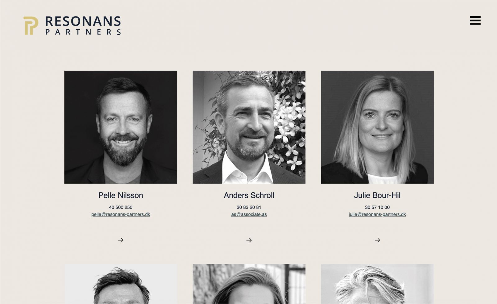 Resonans Partners er et bureau af rådgivere med baggrund i ledelse, strategi og kommunikation. Bureauet består af en række selvstændige rådgivere.