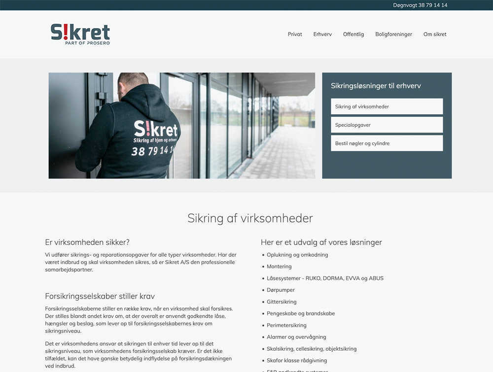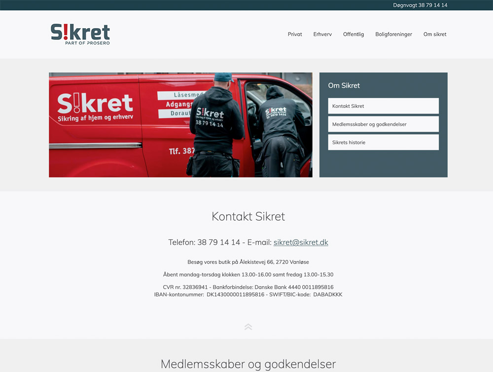 Jeg har designet Sikret's logo og lavet en grafisk profil, der er rullet ud på bl.a. arbejdstøj og biler. Jeg har lavet deres hjemmeside og står for deres søgemaskineoptimering.